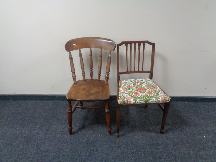 A mahogany occasional chair and pine kitchen chair