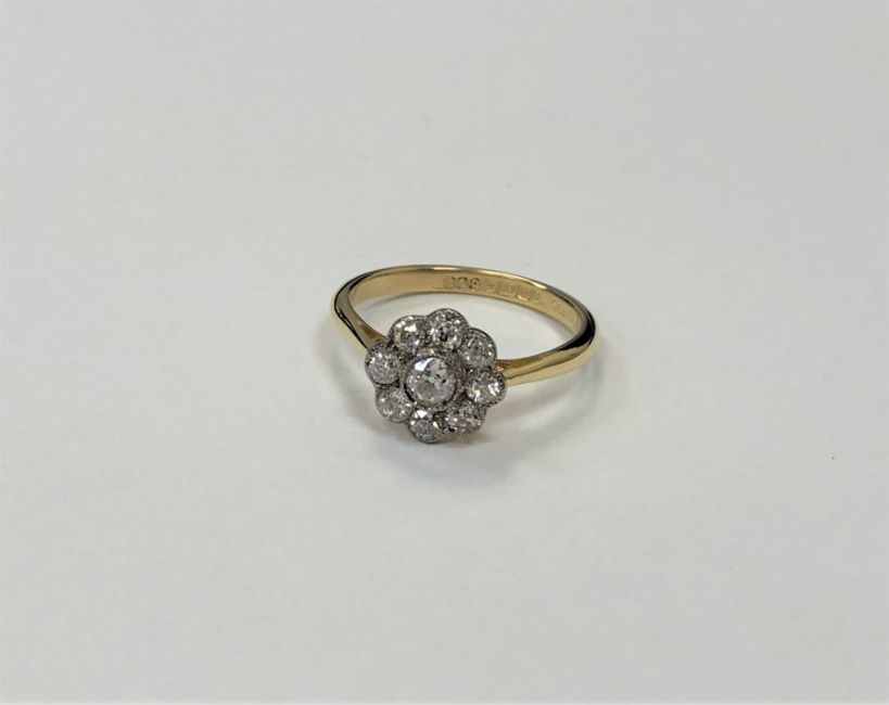 An antique 18ct gold diamond floral cluster ring