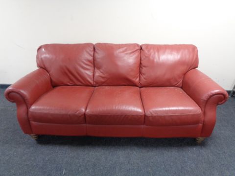 A Barker & Stonehouse three seater scroll arm settee in red leather
