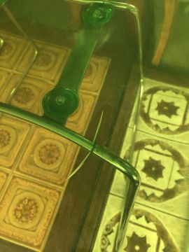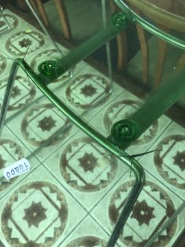 Showing signs of use i.e. scratches and scuffs to the perspex. Two of the chairs have cracks forming in the seats where they touch the metal legs.