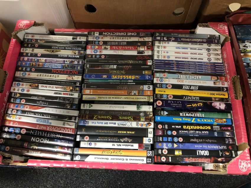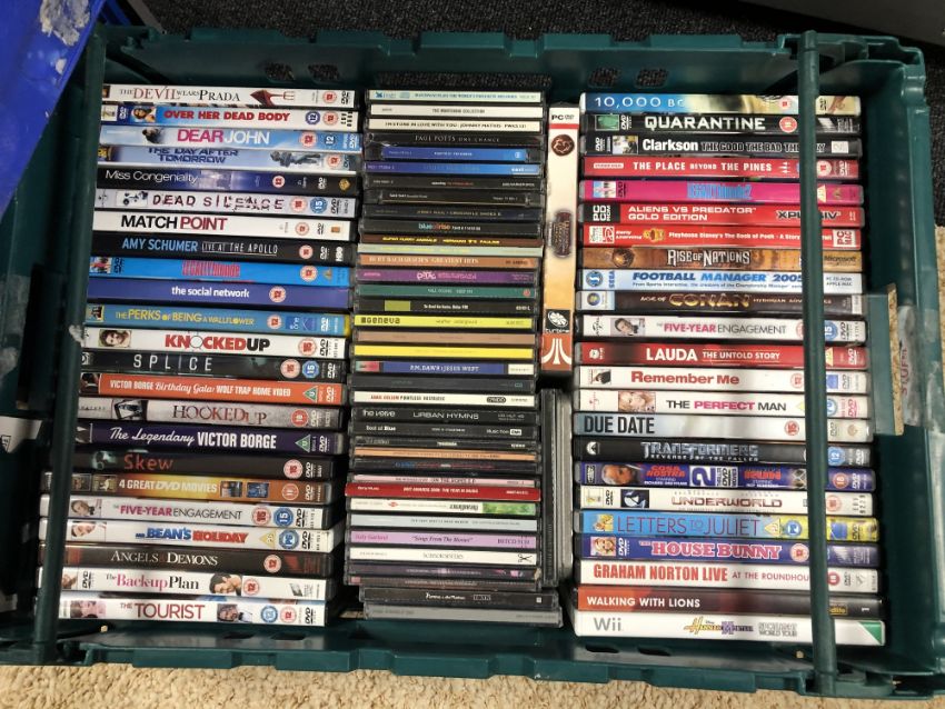 Five crates of dvds, pc games and cds, rock and pop etc