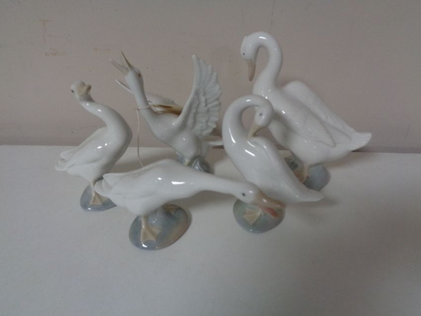 Four Lladro geese and another by Nao (5)