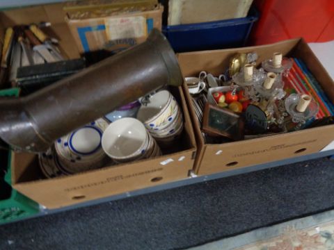 BOX LOTS, MULTIPLE ITEMS, TEA CHINA, ORNAMENTS, SMALL ELECTRICAL ITEMS, LARGE RUG,