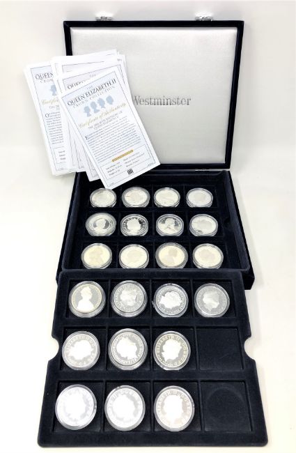 Westminster Coins - The Queen Elizabeth Crown Collection, series of twenty-two coins (two missing), each sterling silver 28.28g (622.16 gross), with certificates.