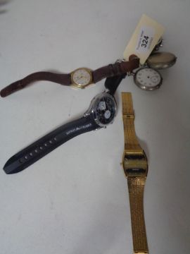 A Citizen wrist watch, Armani watch, two pocket watches, Oris watch etc