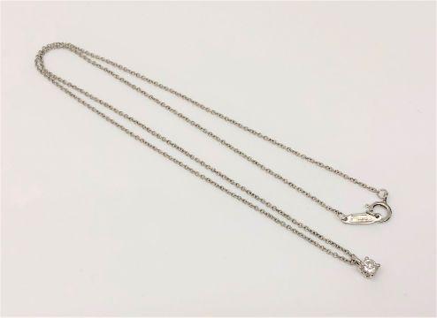 A Tiffany & Co diamond solitaire pendant on platinum chain, approximately 0.15ct.