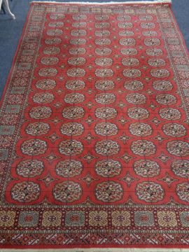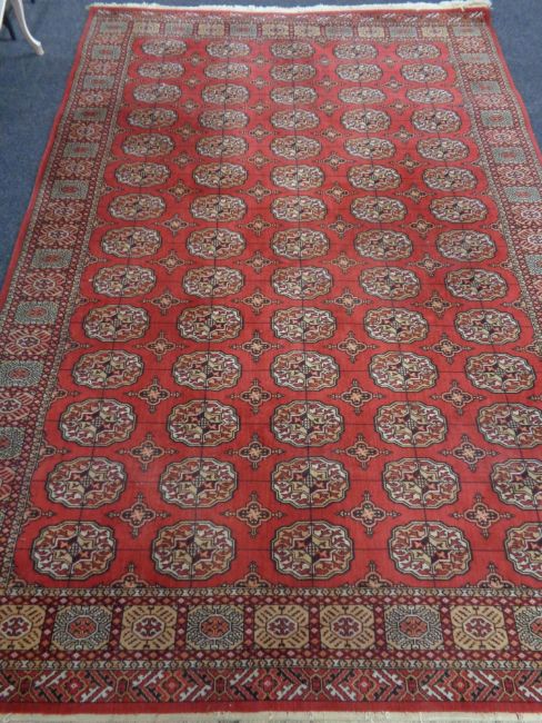 An Eastern fringed carpet on red ground