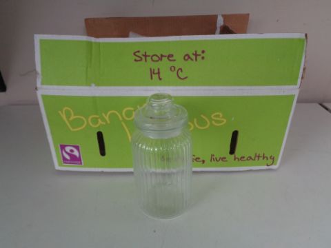 Forty-eight glass bell topped storage jars, height 22 cm (all the same).