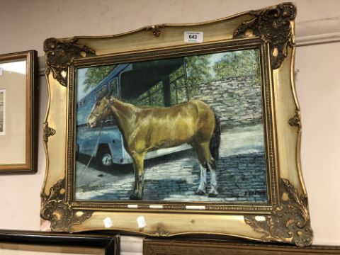 Elizabeth Brown : Police Horse Plessey, oil on panel, signed, 29 cm x 39 cm, inscribed verso 'Painted and Presented to Chief Constable Bailey' February 11th 1980, framed.