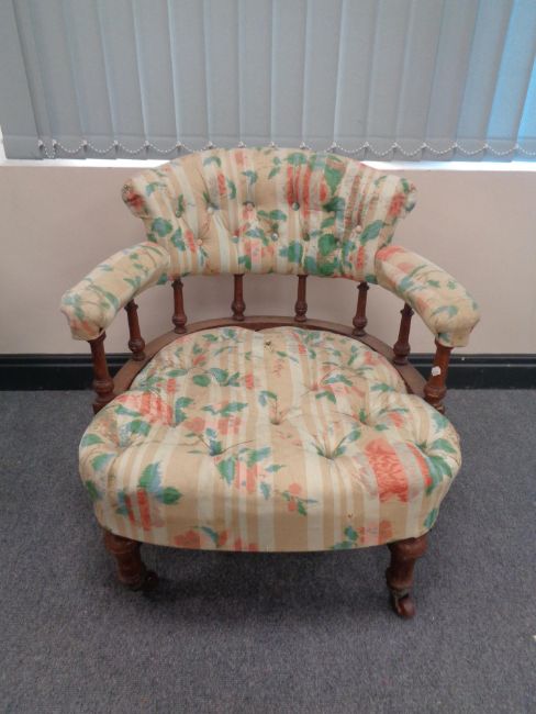 An oak bedroom chair in button back fabric