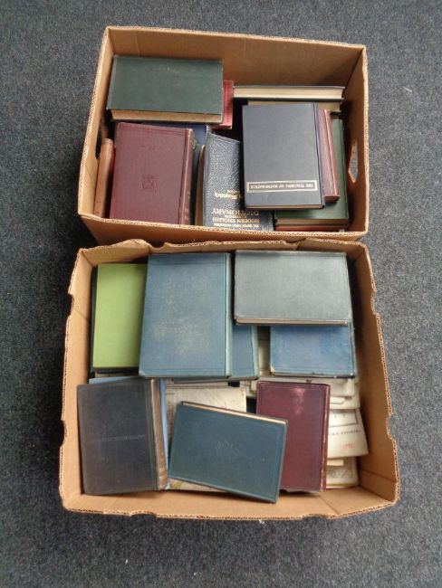 Two boxes of twentieth century books, calculus, Railway time tables etc