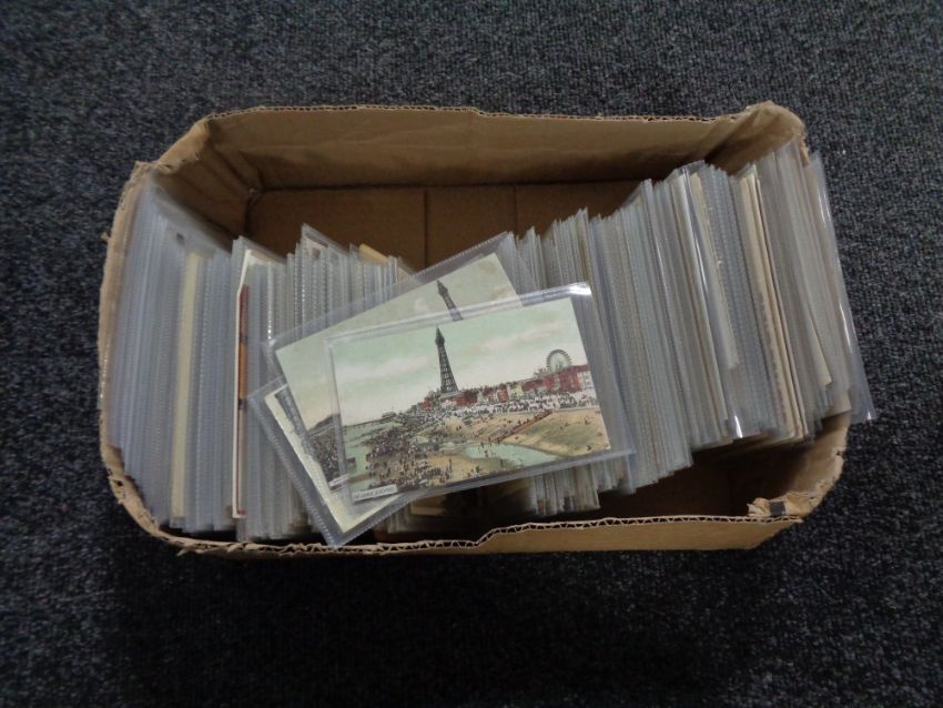 A box of twentieth century black and white & colour postcards