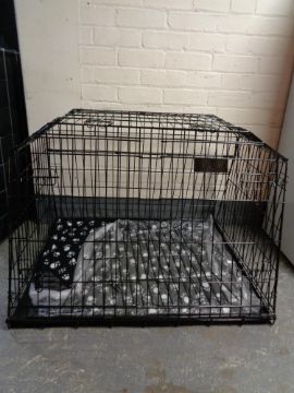 A folding dog cage, with divider, 93 cm x 78 cm
