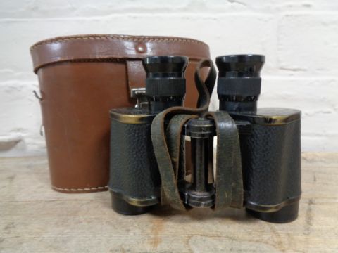 A pair of WW II Kershaw bino-prism No2 MKII x 6 binoculars in leather case