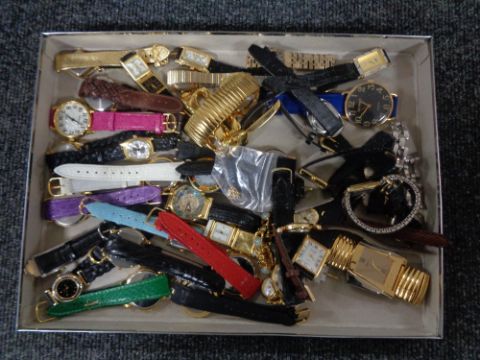 A tray of assorted lady's wristwatches including Mirage, Geneva etc