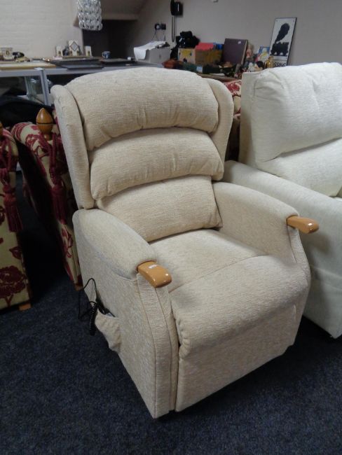 A H.S.L. electric reclining armchair in beige fabric