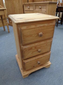 A pine three drawer bedside chest