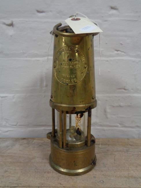 A brass Eccles type 6 protector miners lamp