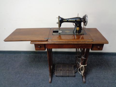 A mid 20th century Singer treadle sewing machine in table