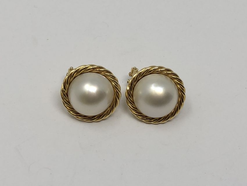 A pair of 18ct gold mabe pearl earrings.