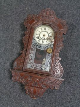 A nineteenth century American wall clock by Ansonia clock company with pendulum and key