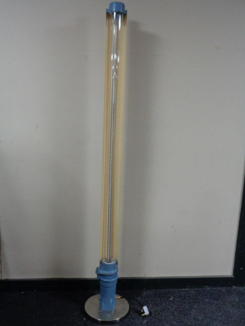 An early twentieth century Industrial gas floor lamp with LED light strip, height 180 cm.
