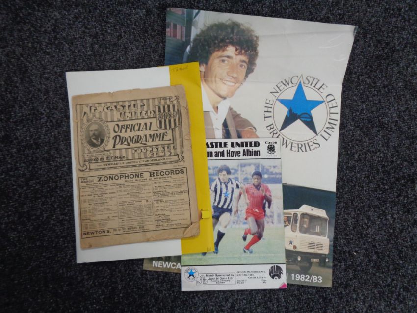 A 1948-9 Newcastle official program V Sunderland, Newcastle United V Brighton and Hove Albion 1984 match day programme signed by Kevin Keegan together with a poster