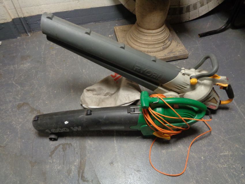 A Ryobi petrol garden vacuum and a NuTool electric garden vacuum