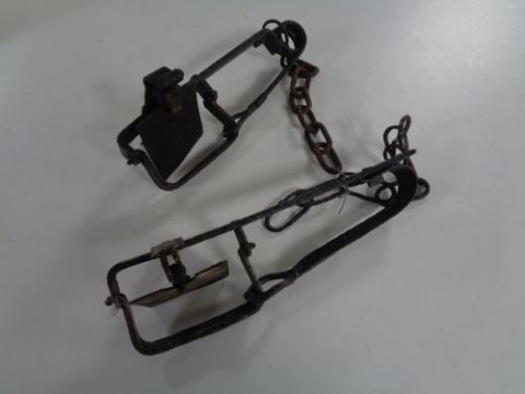 Two vintage gin traps