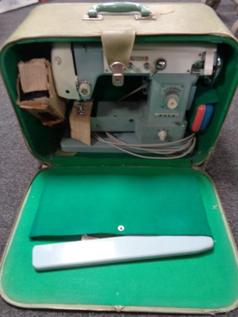 A cased 20th century Koyo electric sewing machine (continental wiring)
