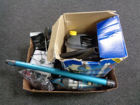 A box of wall paper steamer, cordless vac, charger, air cooler etc