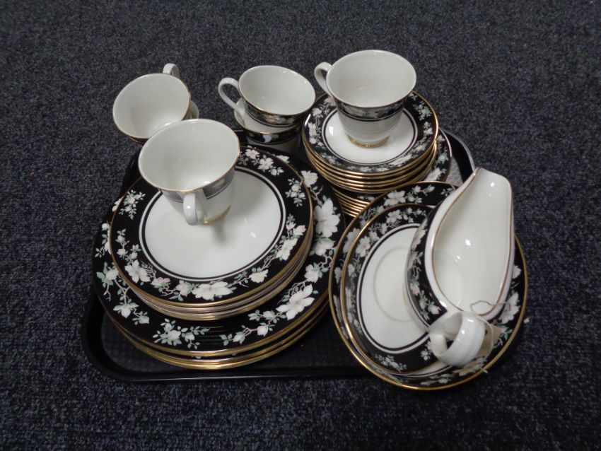 A tray of thirty-three pieces of Royal Doulton Intrigue tea and dinner service