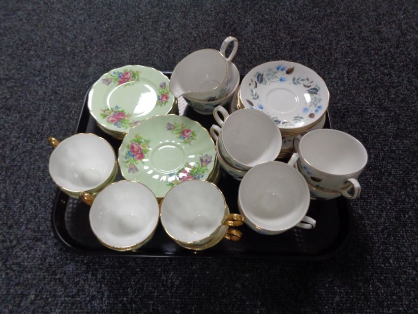 A tray of six bone china trios together with a twenty piece Colclough tea service