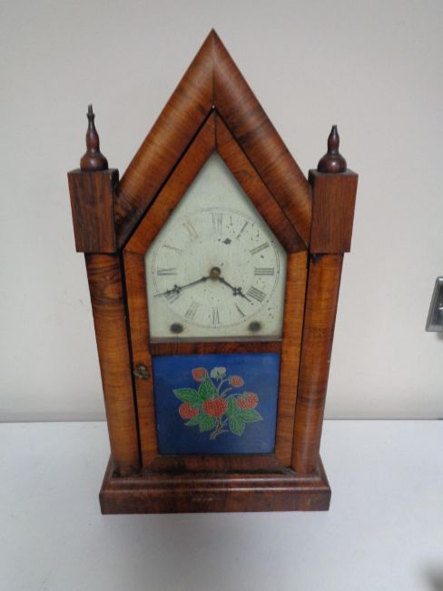 A late 19th century mahogany and pine Gothic mantel clock by the Ansonia clock company