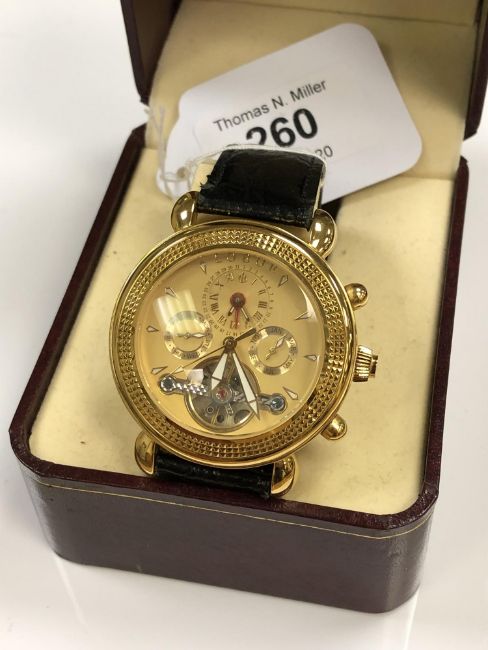 A Gentleman's Lobor collection wrist watch on black leather strap, boxed.