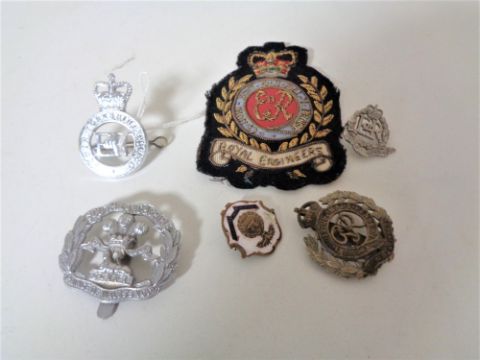A collection of badges, South Yorkshire Police, Royal Engineers etc.