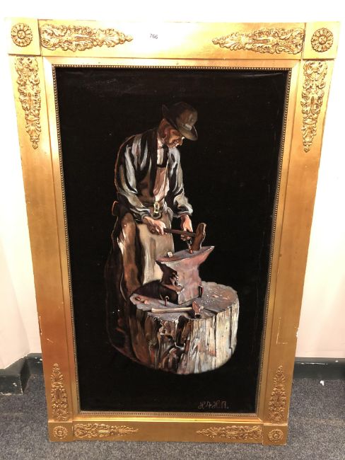 Continental School : Blacksmith, oil on board, signed.
