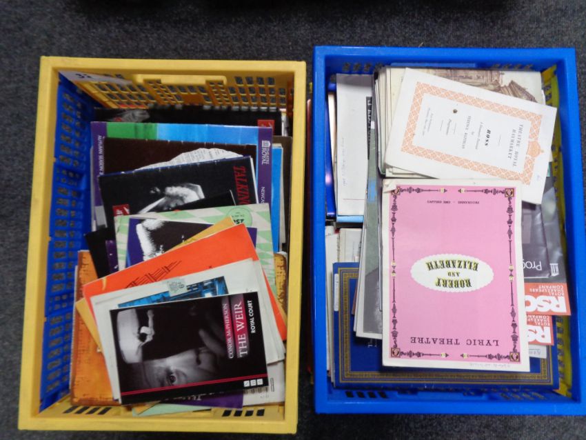Two plastic crates of theatre programmes