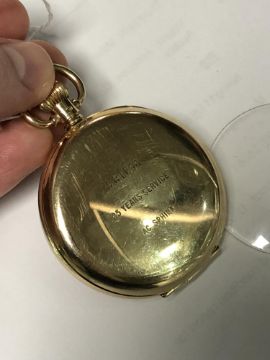 Winds and runs. Inner dust cover is hallmarked. Dial appears to be in good condition. Case free of dents and prominent scratches. Lens has come loose and needs placing back in the face. Gross weight excluding the lens is 81.6g. See images.