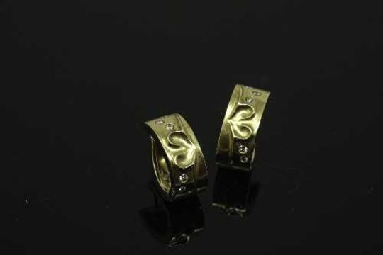 A pair of 18ct yellow gold diamond earrings by Boodles and Dunthorne, 15.1g, approximately 0.31ct diamonds.