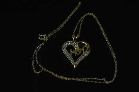 A 10ct yellow gold diamond heart pendant on yellow gold chain, approximately 0.25ct.