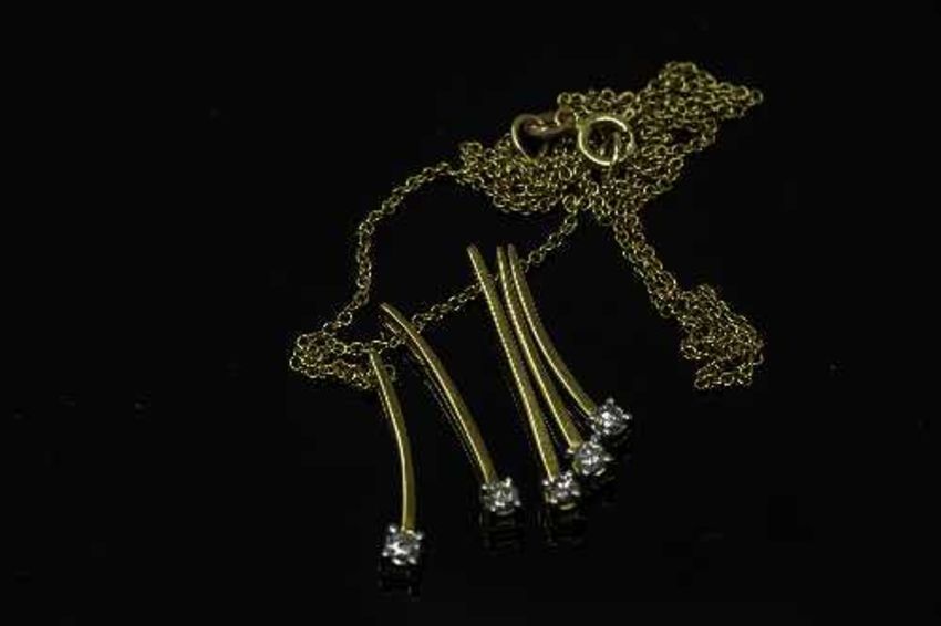 A 10ct yellow gold pendant on 14ct gold belcher chain, set with approximately 0.25ct diamonds.