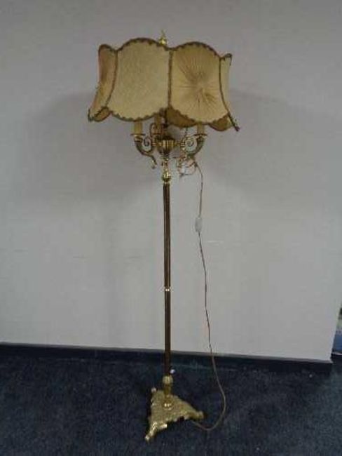 A continental brass standard lamp with shade