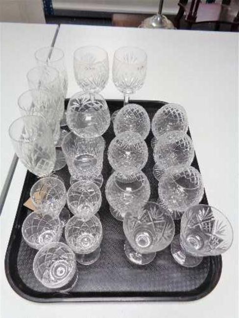 A tray of crystal glass, brandy glasses etc