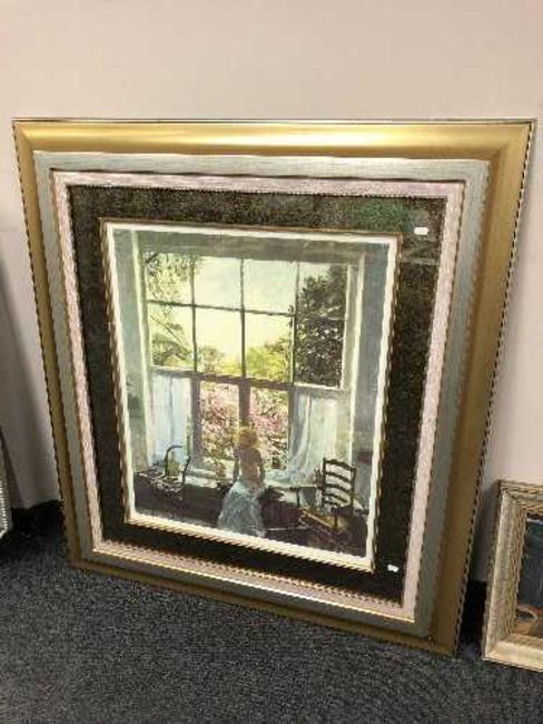 After Ken Howard : Springtime at Oriel, reproduction in colours, numbered 58/175, signed in pencil, 76 cm x 62 cm, framed.