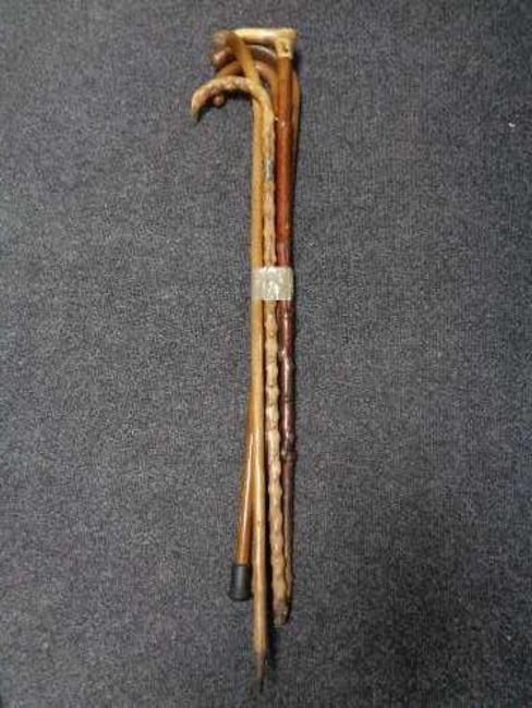 Five antique walking sticks (one with silver mount)