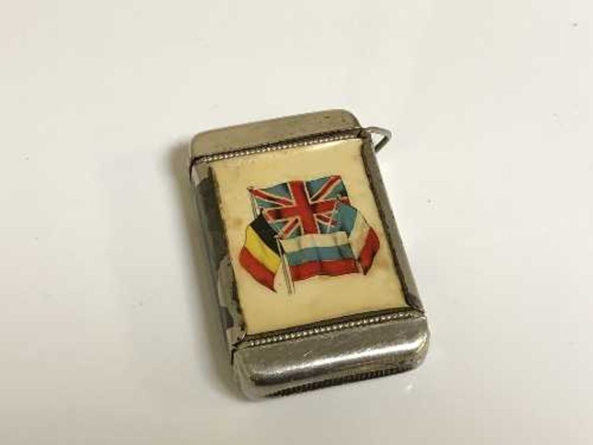 A silver plated vesta case of military interest