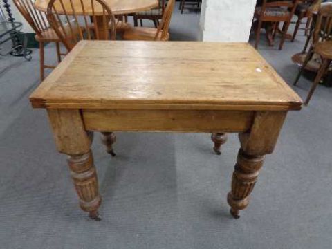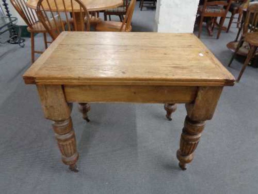 A Victorian pine turn over topped table. Height 74 cm x length 90 cm x width 63 cm.
