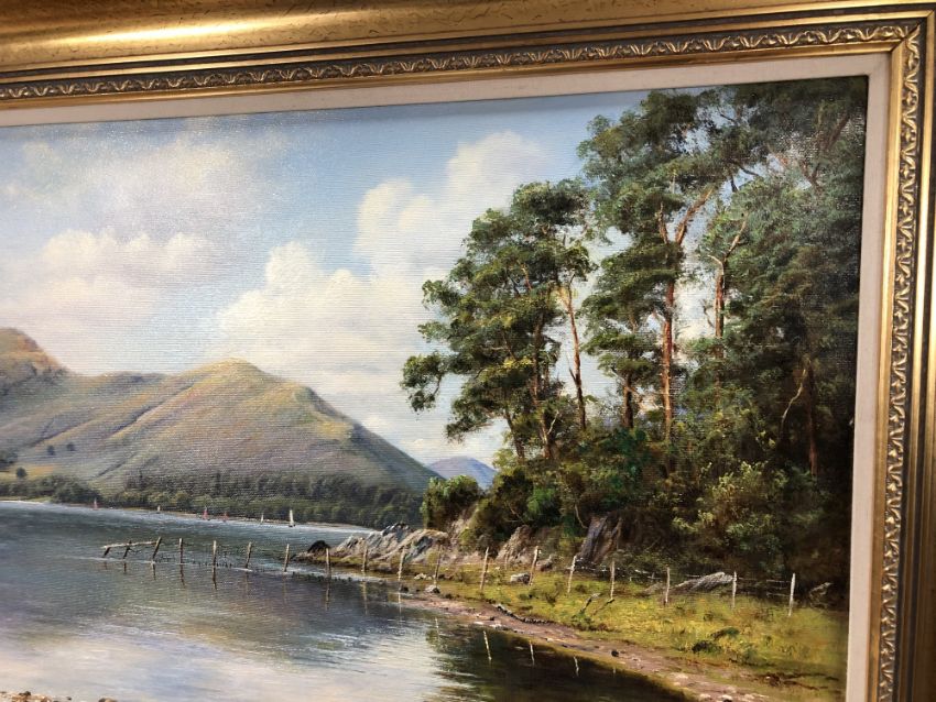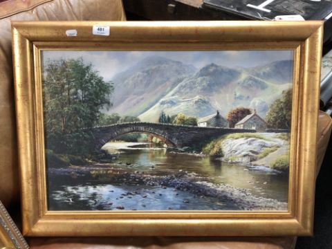 Paul Harley (British Contemporary), Friar's Head, Derwentwater and Cat Bells, oil on canvas, signed and dated '03, 60cm by 40cm. Together with another print after the same artist, bridge over a stream. (2)