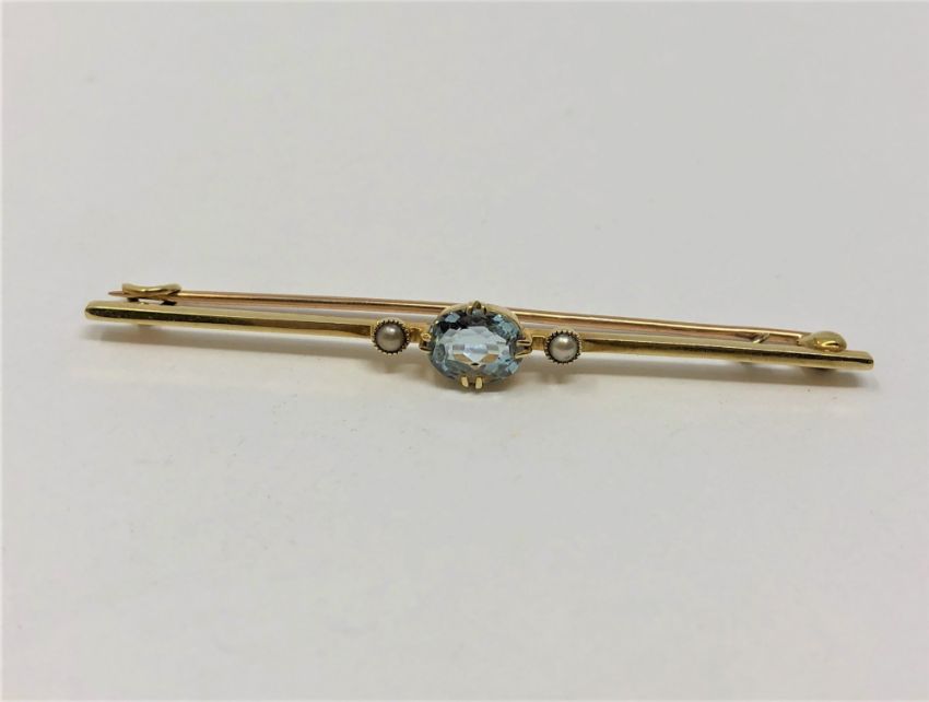 An antique 15ct gold aquamarine brooch